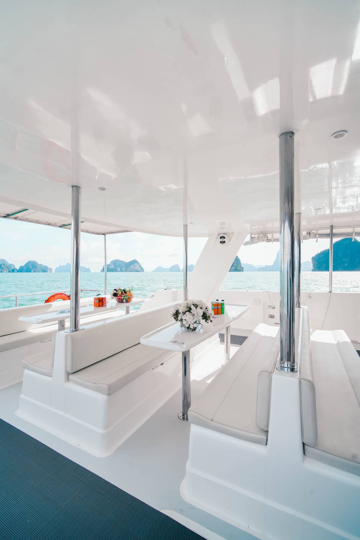 This full-day small-group yacht tour from Phuket offers a relaxed and immersive way to explore Phang Nga Bay, including James Bond Island, Hong Island, and Naka Island. Designed for space, stability, and smooth cruising, the double-deck vessel provides open decks, shaded seating, and onboard facilities suitable for all ages. The experience blends scenic island exploration, cultural elements, and interactive water activities such as kayaking and paddleboarding, followed by a sunset cruise with refreshments on the return journey. Well suited for families, couples, and small groups, this tour presents a comfortable alternative to crowded speedboat excursions while showcasing the highlights of Phang Nga Bay at an easy pace.