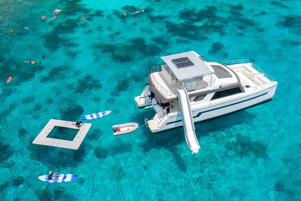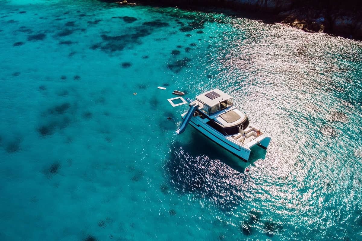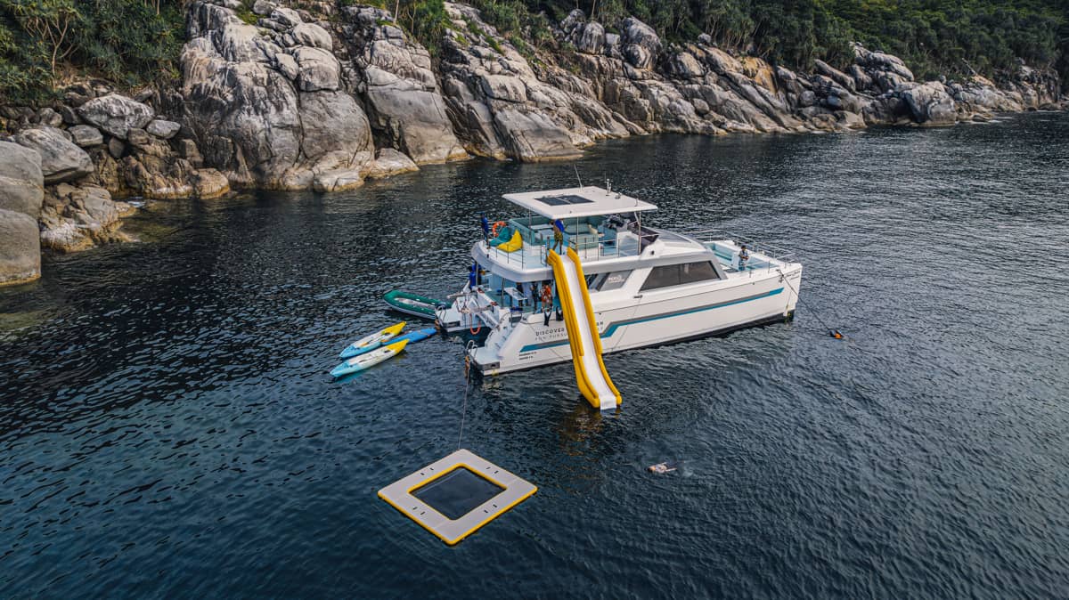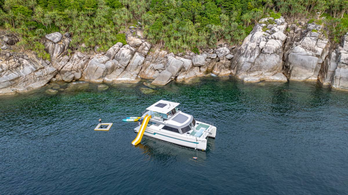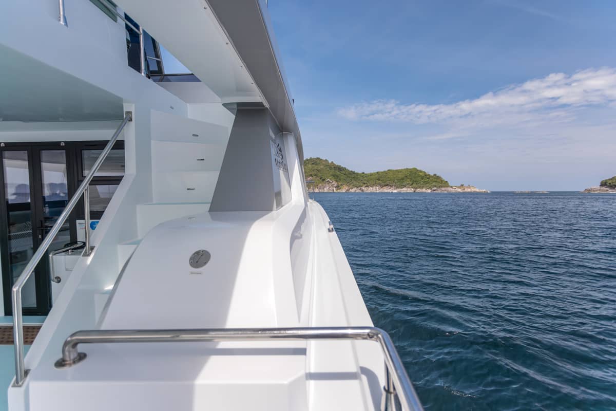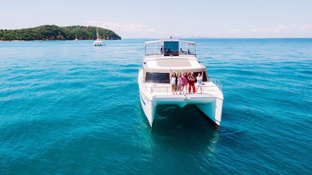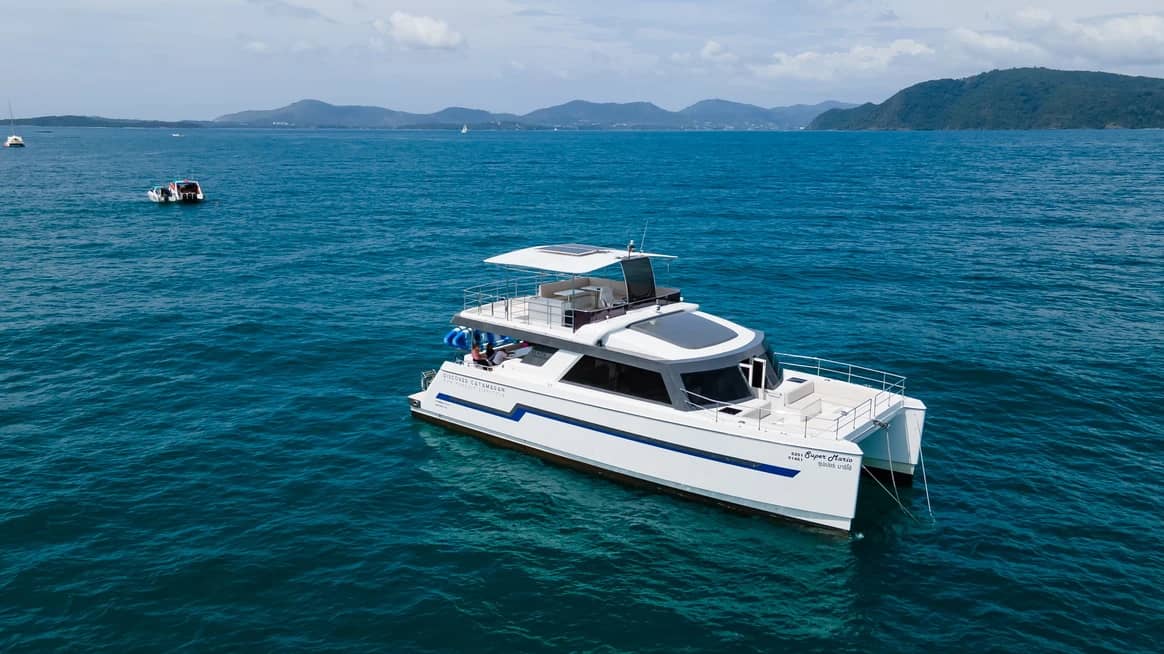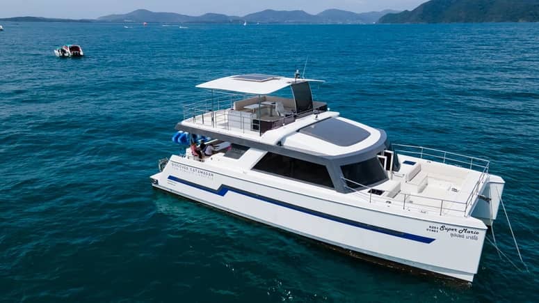 This full-day small-group catamaran tour from Phuket offers a relaxed and well-balanced way to explore the Phi Phi Islands and surrounding Andaman Sea. Designed for comfort and space, the twin-hull catamaran features open decks, shaded lounges, and a range of onboard water activities, combined with guided snorkeling, island stops, and open-sea cruising. With meals and refreshments served onboard and a carefully paced itinerary, the experience is well suited for couples, families, and small groups seeking a smooth, enjoyable day at sea as an alternative to crowded speedboat tours.
